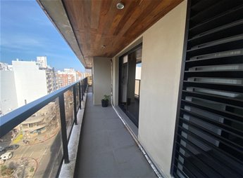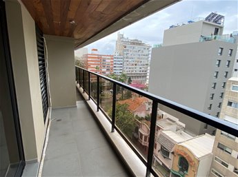 CONFORTABLE APARTAMENTO TOTALMENTE EQUIPADO EN EDIFICIO CATEGORIA, ideal extranjeros, diplomáticos, amplio y soleado con vista a la Plaza Gomensoro y rambla en el corazón de Pocitos, buen gusto, piso alto living-comedor con amplia terraza, cocina definida con terraza con lavarropas – secarropas, amplio dormitorio con balcón, placares con buena capacidad, baño completo.